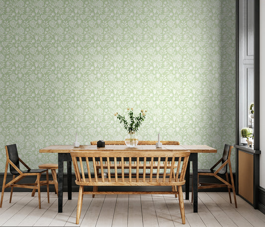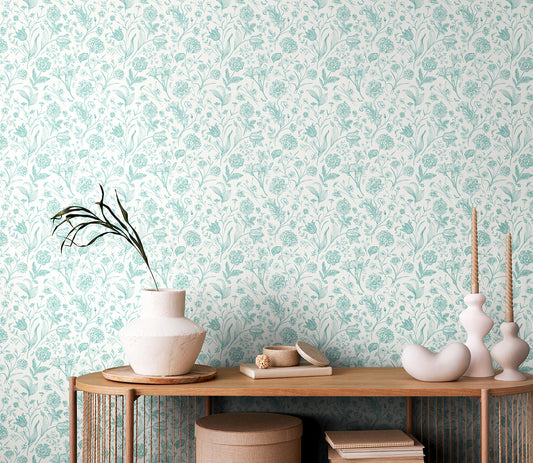 FLORAL TOILE - Duck Egg Blue