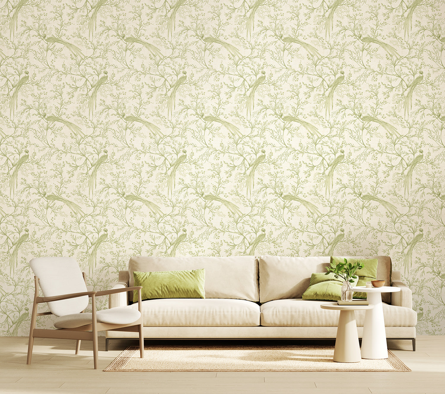 Bird Toile blends artistic expression with natural elegance. Perched among flowering branches and leafy stems, long-tailed birds with feathered crests bring a touch of personality and quiet storytelling to the scene. Rendered in inky, sketched lines against a soft, linen-textured ground, this design has a hand-drawn charm.