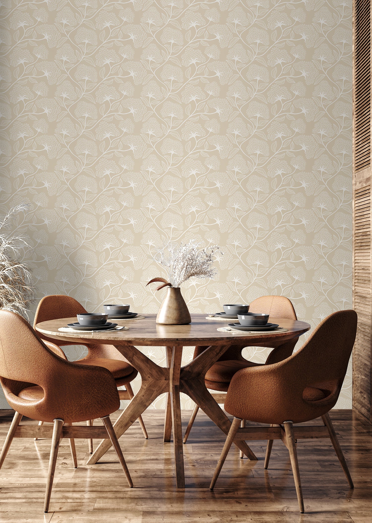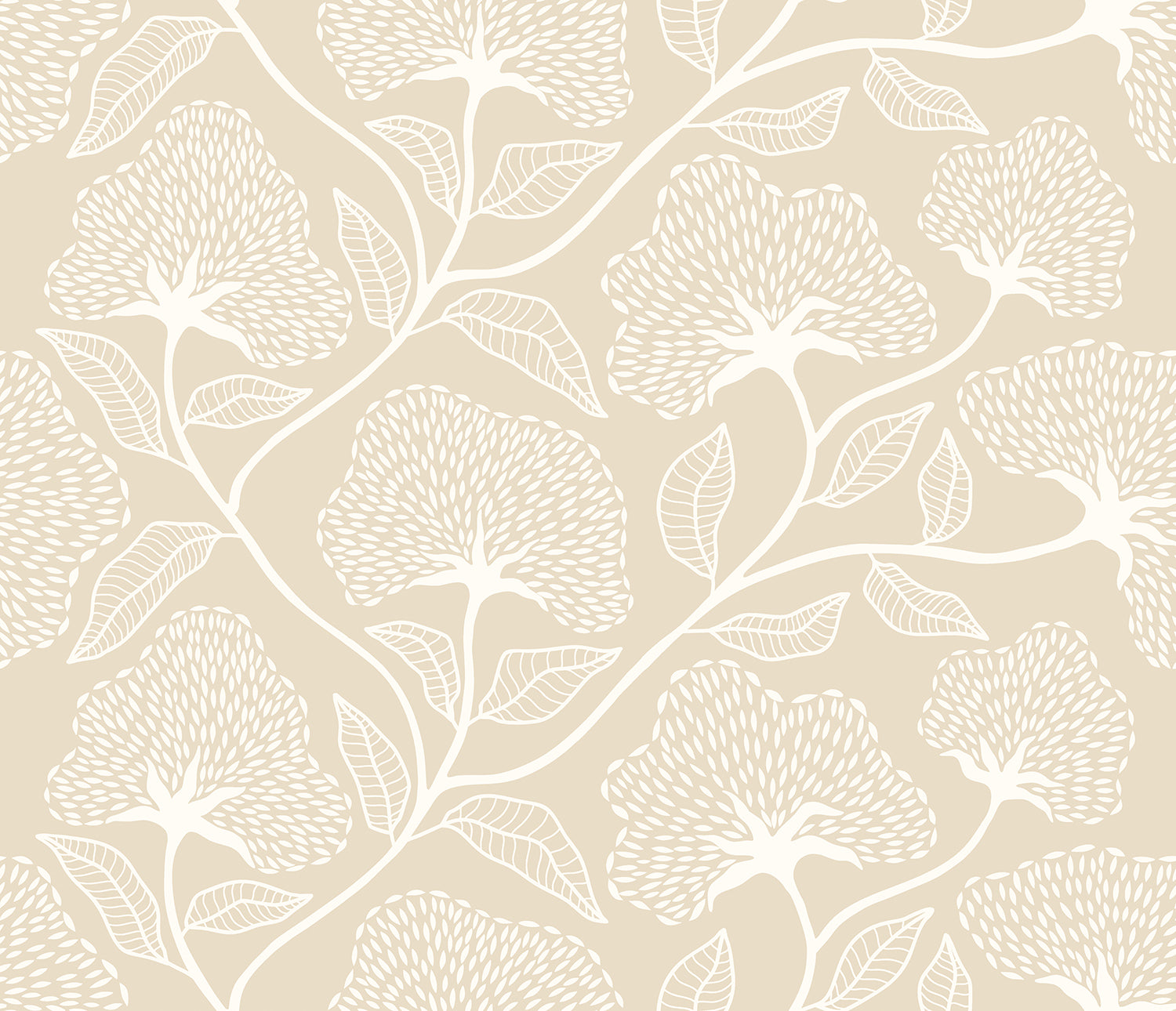Delicate stems weave gently across the surface, dotted with soft leaves and stylized blooms drawn in fine dashes and minimal linework. With its light, two-tone palette and airy composition, this design creates a gentle sense of movement—calming, modern, and effortlessly elegant.