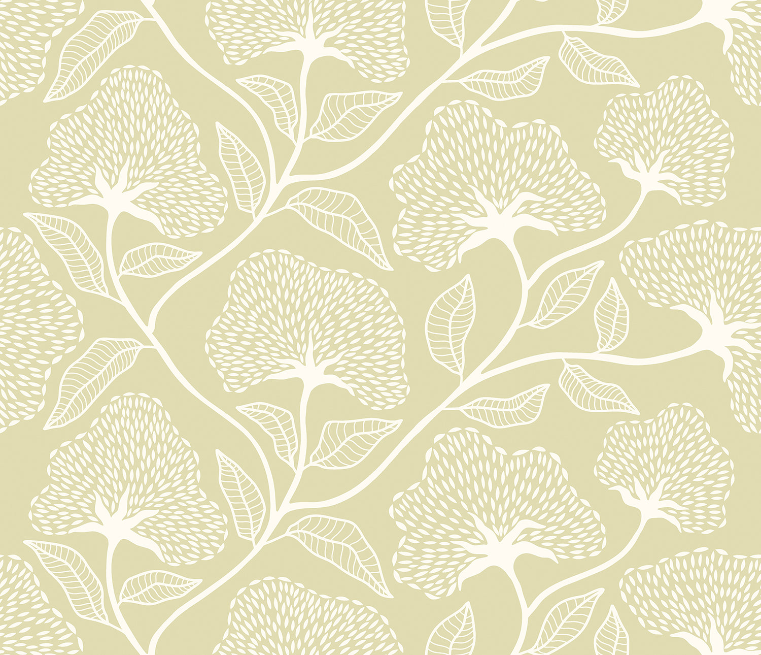 Delicate stems weave gently across the surface, dotted with soft leaves and stylized blooms drawn in fine dashes and minimal linework. With its light, two-tone palette and airy composition, this design creates a gentle sense of movement—calming, modern, and effortlessly elegant.