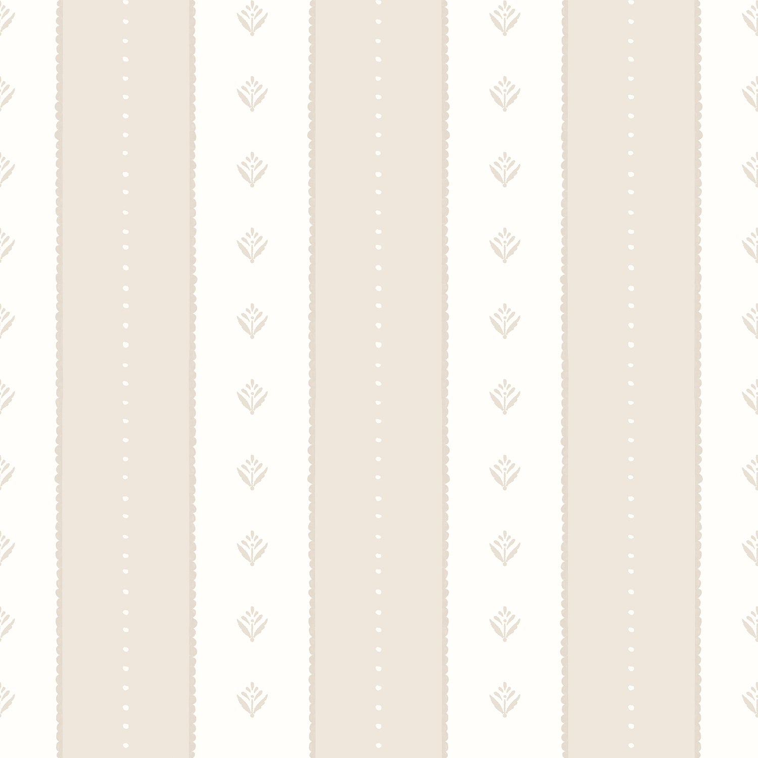 This design reimagines the traditional stripe with a crafted, contemporary edge. Broad vertical bands are softened by painterly texture, while scalloped edges introduce a subtle decorative contour. A quiet interplay of detail - fine dots and charming leaf motifs - adds rhythm and elegance.