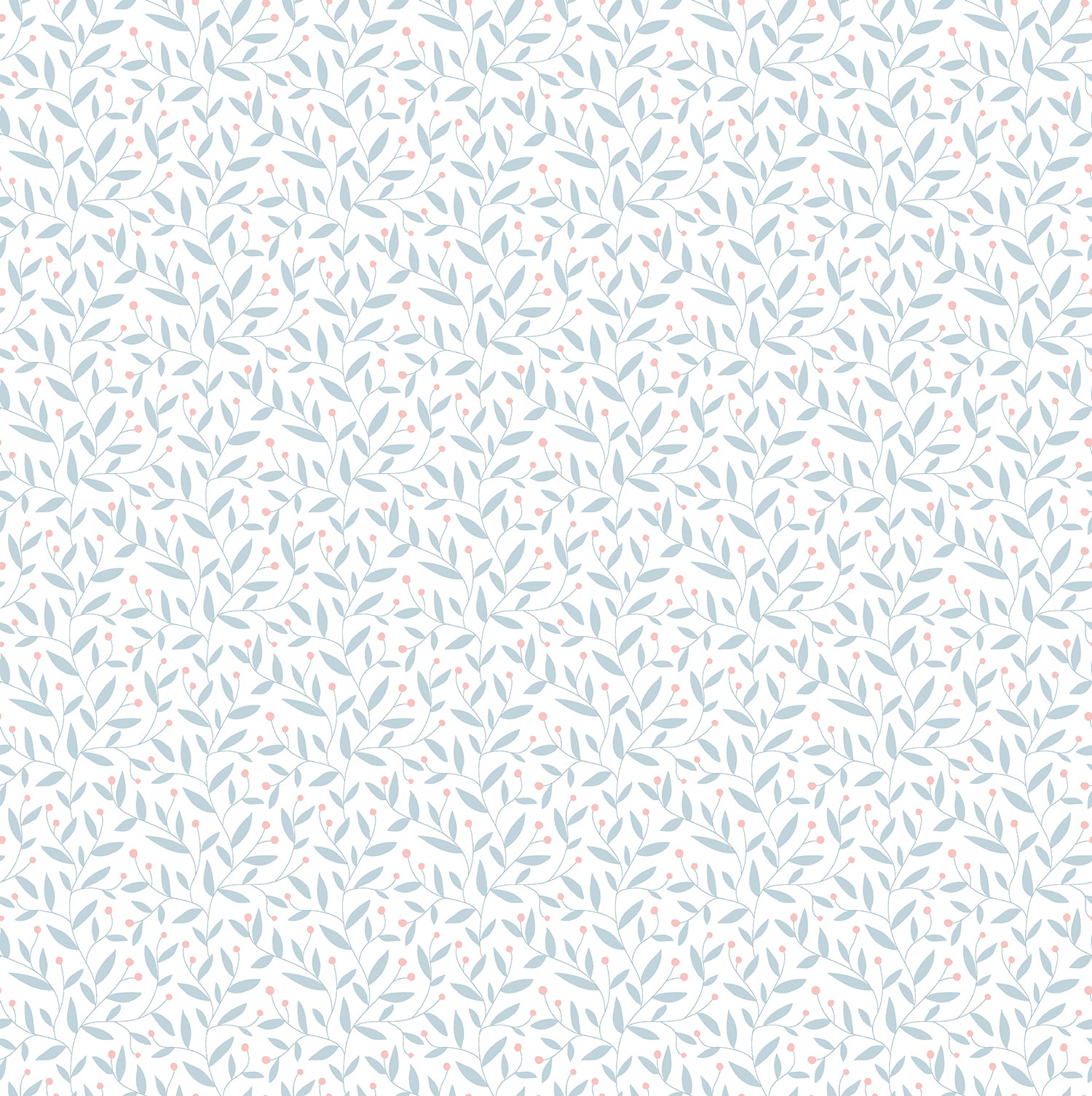 Dotty Vine is a light, flowing design that evokes a sense of movement and ease. Fine, curling vines stretch across the pattern, scattered with delicate leaves and playful berry-like dots that add subtle pops of colour. The result is airy and organic, simple yet full of gentle energy.
