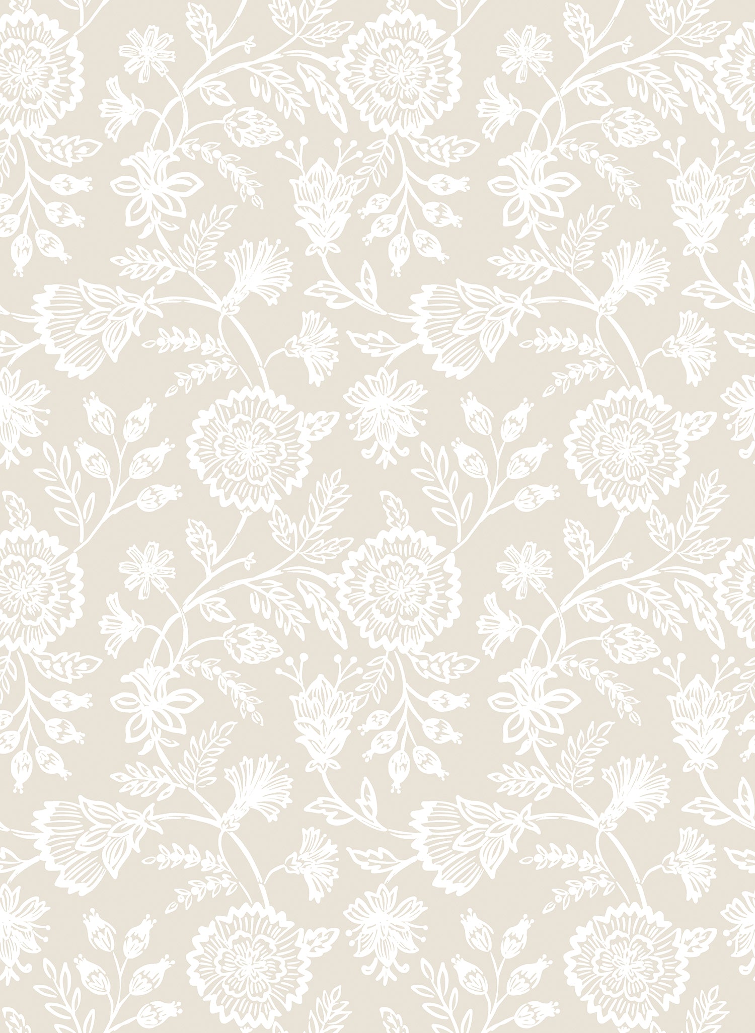 Evelyn Trail is a delicate trail design that celebrates the beauty of simplicity. Fine white florals and slender stems weave gently across a coloured ground, creating a two-tone contrast that feels fresh and timeless. Intricate detailing through fine lines, dots, and graceful petal shapes brings each bloom to life with a quiet elegance.
