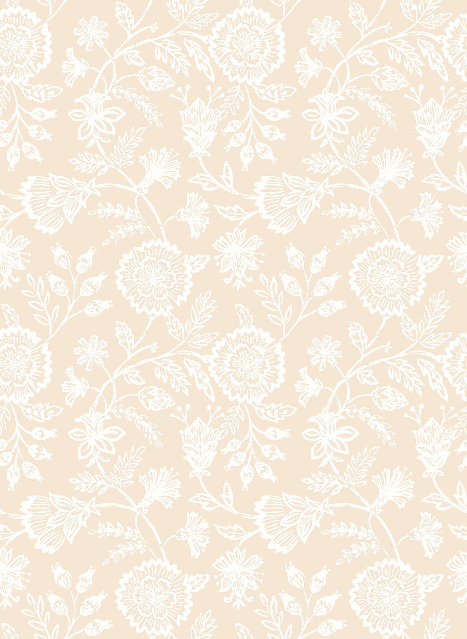 Evelyn Trail is a delicate trail design that celebrates the beauty of simplicity. Fine white florals and slender stems weave gently across a coloured ground, creating a two-tone contrast that feels fresh and timeless. Intricate detailing through fine lines, dots, and graceful petal shapes brings each bloom to life with a quiet elegance.