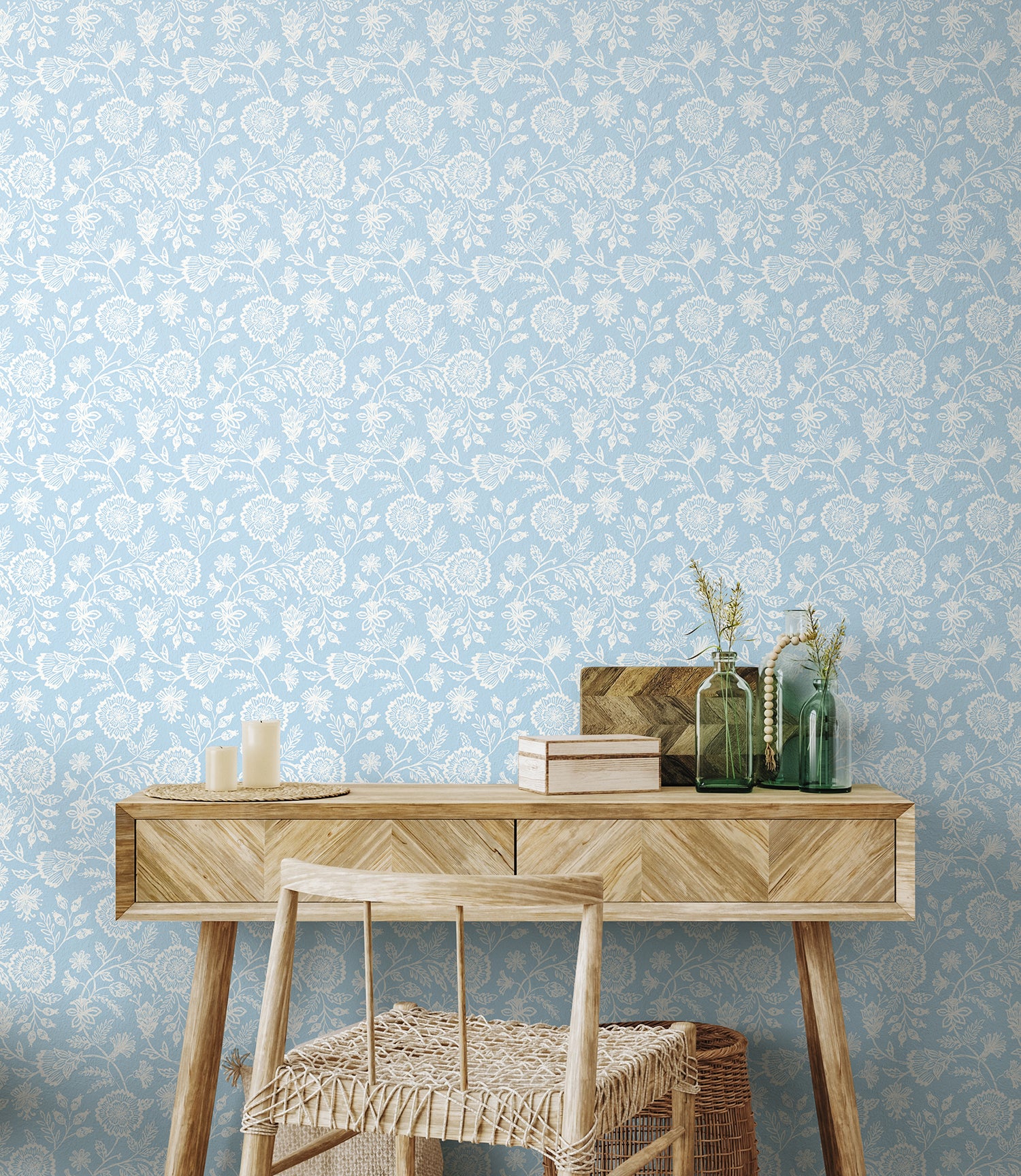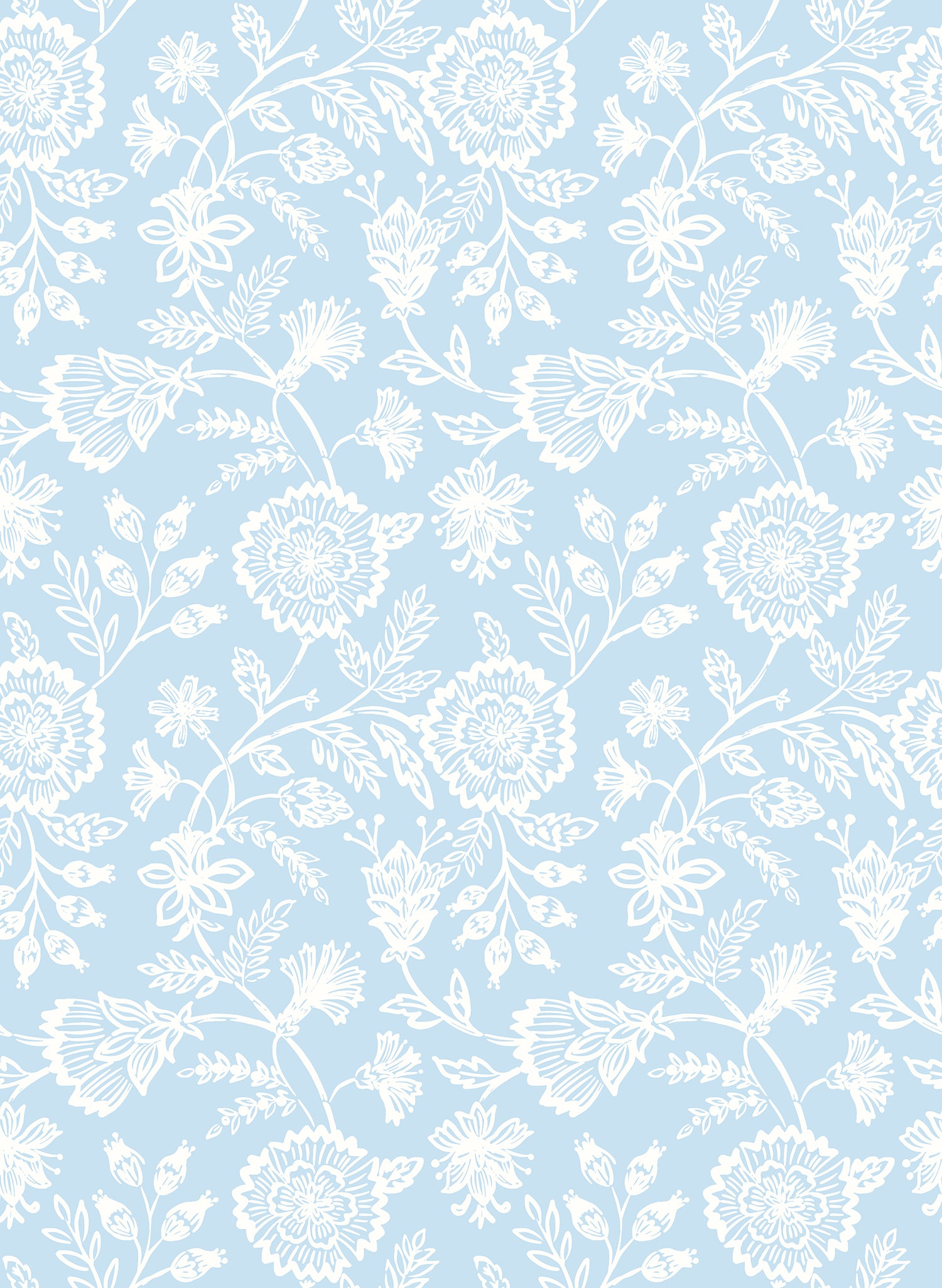 Evelyn Trail is a delicate trail design that celebrates the beauty of simplicity. Fine white florals and slender stems weave gently across a coloured ground, creating a two-tone contrast that feels fresh and timeless. Intricate detailing through fine lines, dots, and graceful petal shapes brings each bloom to life with a quiet elegance.